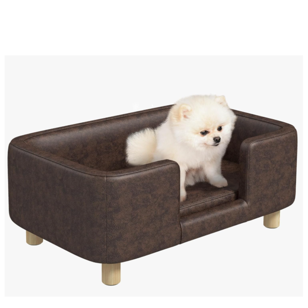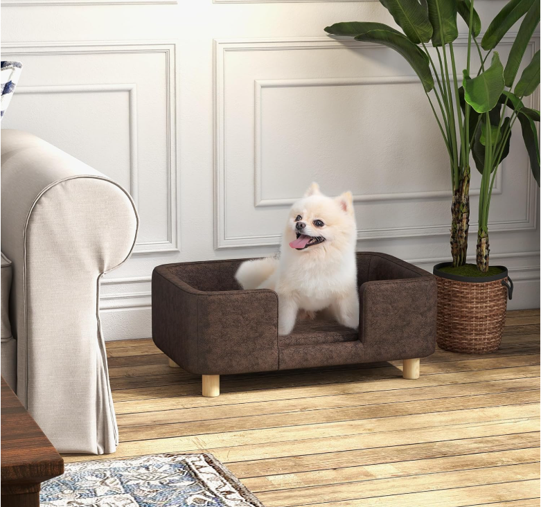 A cama para animais de estimação combina conforto e estilo, proporcionando um espaço perfeito para o descanso do seu cão. Com um design moderno em formato de sofá e bordas elevadas, oferece segurança e aconchego ao mesmo tempo que valoriza a decoração da casa. As pernas altas mantêm o seu patudo afastado da humidade do chão e permitem uma melhor circulação do ar, garantindo frescura durante o uso. Feita em madeira maciça, é resistente, estável e suporta até 10 kg. Medindo 74 x 48,5 x 31 cm, é ideal para cães de pequeno porte, sendo necessária uma montagem simples.