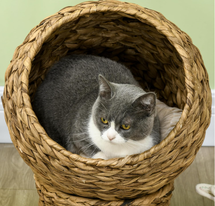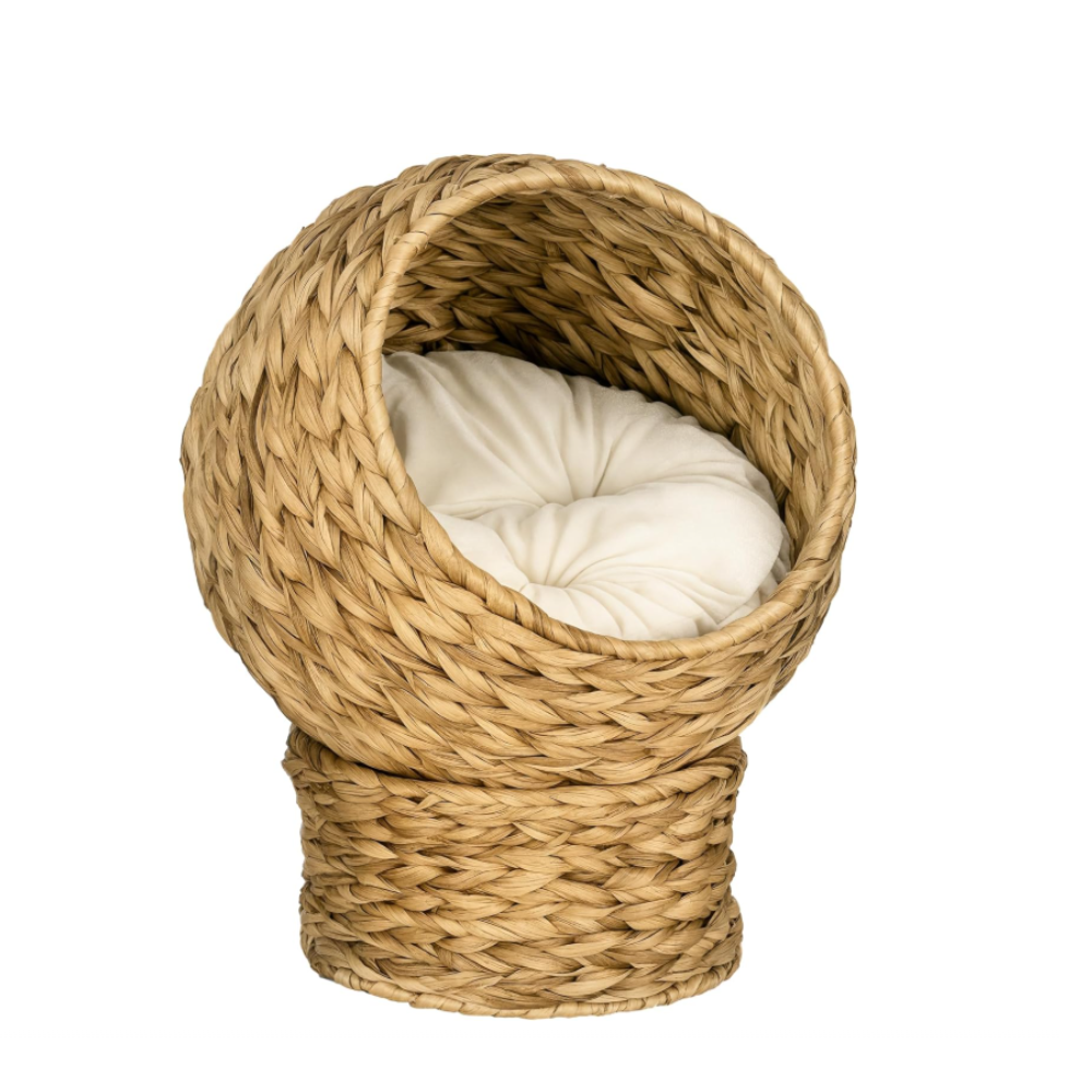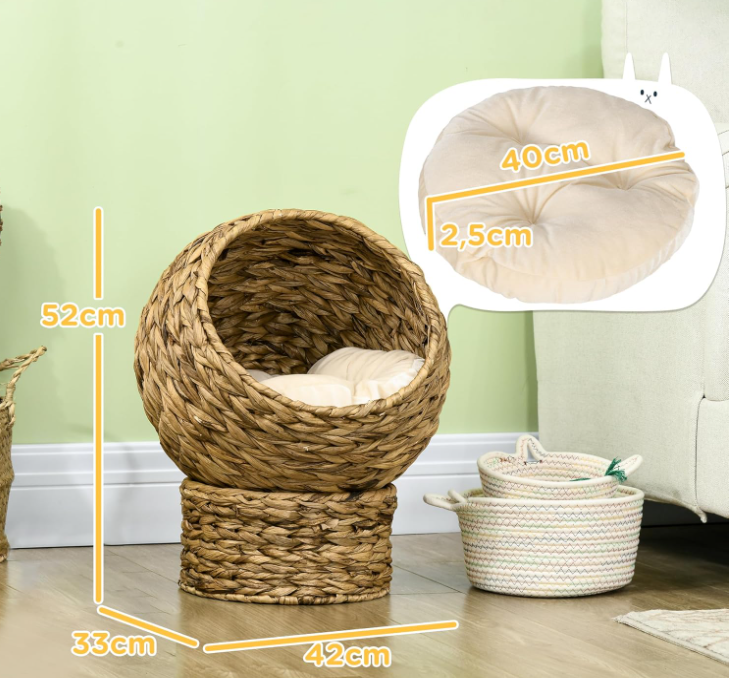 Dê ao seu patudo o conforto que ele merece com esta cama redonda em forma de cesto, ideal para descansar, esconder-se ou brincar. Fabricada em algodão natural, é segura, resistente e muito confortável. A almofada removível torna a limpeza simples, já que pode ser facilmente lavada na máquina, mantendo sempre o espaço higiénico e agradável para o seu patudo. Além de funcional, esta cama tem um design elegante e decorativo que se adapta facilmente a qualquer ambiente da sua casa, tornando-se também um elemento de destaque na decoração. Com capacidade para suportar até 5 kg, é perfeita para gatos de pequeno e médio porte, oferecendo um cantinho especial e acolhedor que o seu patudo vai adorar.